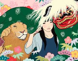 Essa dança, shishimai, tem o objetivo de exorcizar os espíritos malignos. Um homem vestido de leão e um flautista saem pelas ruas, executando uma dança em frente das casas para atrair sucesso material às famílias. À medida que se apresentam, são recompensados com dinheiro.